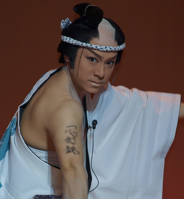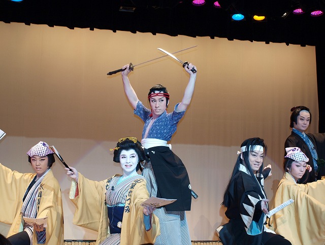 Today's play was titled "Echigo Ninkyo-den" or "Tale of Men with chivalrous spirits in Echigo (located in the northern part of Japan)". Men with chivalrous spirits showed their obstinacy, pride and dignity in the story. The skillful actor Yoshinori TAKARA seemed to be a main cast and his performance made audience impressive.